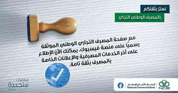 As part of its constant endeavors and continuous efforts to maintain the trust of its customers, National Commercial Bank verified its Facebook page by obtaining the blue verification badge. NCB clarified that the importance of this achievement accomplished in cooperation with Imagine Group lies in that it will protect the bank from frauds and fake pages that attempt to steal customer data and publish false information. Together with this, the bank pointed out that as Facebook considers this page the bank’s official platform, all news and information published on NCB Facebook page will be correct, reliable, and official.